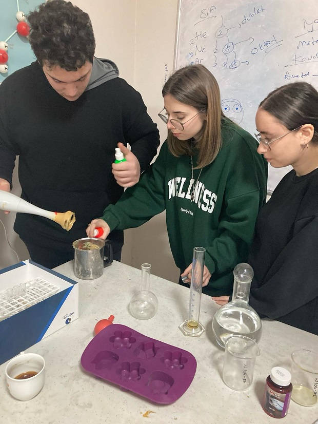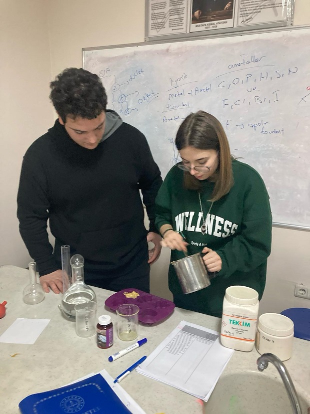 Sabun, yağ asitleri , NaOH / KOH ve su karıştırıldığında ortaya çıkan kimyasal reaksiyon ile oluşur. 12 Anadolu sınıfı ile Kimya Laboratuvarında eğlenerek sabun yapımını deneyimledik.